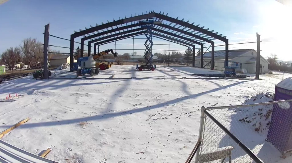 1/5/2026- The contractor installing the steel structure started on December 1st to erect the building and is making good progress despite heavy winds and some snow. Once the structure is squared and ready, the roof insulation and sheeting will begin. Completion of the structure is estimated to be about 7-8 weeks start to finish (toward the middle of February, weather permitting). But we need to pay the contractor putting it up, so if we don’t get to our target of $63,700 by the time they need to start putting walls up (about the middle of January), we’ll have to ask them to stop at roof only.